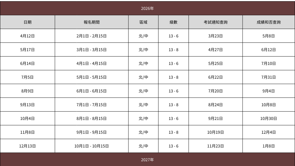 ♪ 2026/4 - 2027/3 鋼琴檢定日程