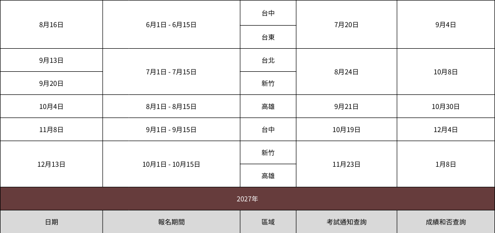 - 一旦報考人數達到考場的最大容納量,報名將提前截止。