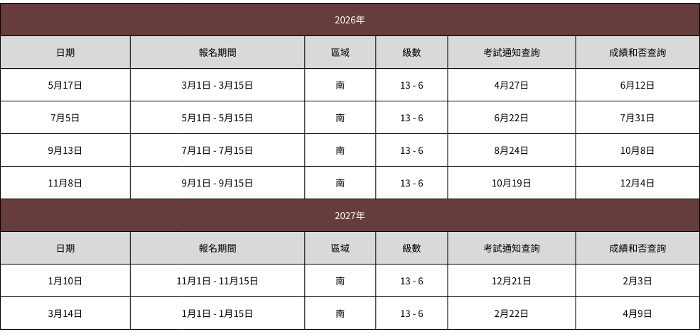 ♪ 2026年4月 - 2027年3月鋼琴檢定日程