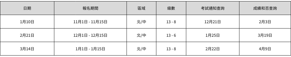 ♪ 2026年4月 - 2027年3月 鋼琴檢定日程
