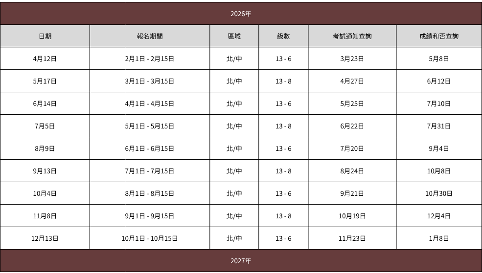 ♪ 2026年4月 - 2027年3月 檢定時程